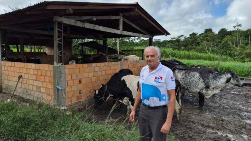 Ter os animais com conforto e eu também, né? Trabalhar só debaixo do sol é complicado”, ressalta Sangelo. “A gente produz açaí, produz banana, pupunha, essas coisas assim, laranja, tangerina”, enumera o trabalhador rural, que também produz, junto com a esposa, queijo e iogurte e comercializa na comunidade.